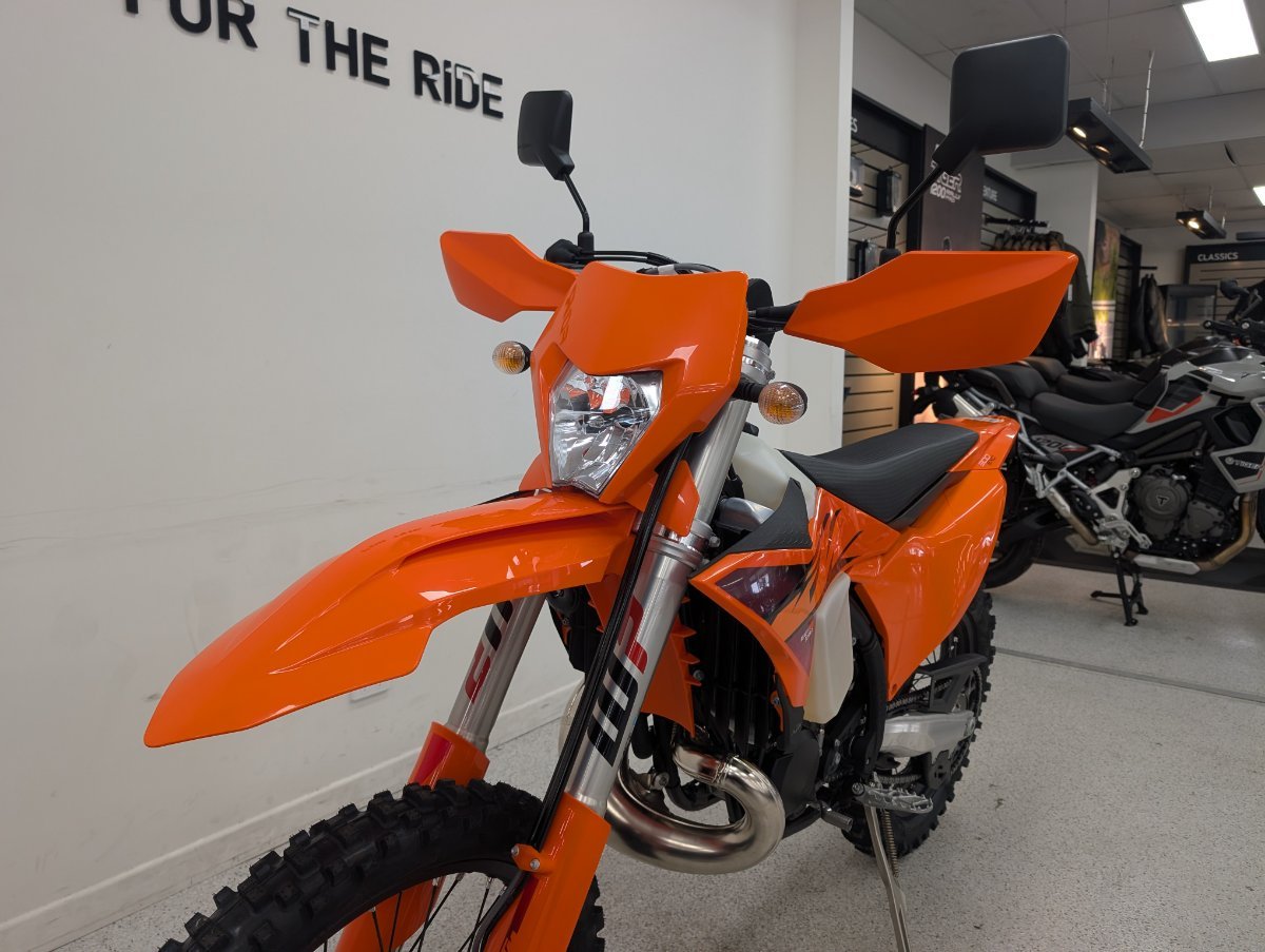 The KTM 300 EXC maintains legendary status as the undisputed King of enduro. Not only does it have the most recognized title at the sharp end of hard enduro, it's still unmatched when it comes to 2-stroke ingenuity, fury, and downright fun. With a bulletproof, fuel-injected 2-stroke engine churning out masses of low-down torque and top-end fury, it's the ideal companion when tackling challenging terrain.