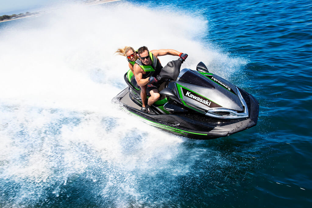 The advanced deep-V hull design is inspired by Kawasaki's championship-winning race machines, with a 22.5-degree hull angle that allows the watercraft to penetrate swells and waves with great efficiency and less shock. Tuned sponsons help provide straight-line stability and high-grip performance in turns.