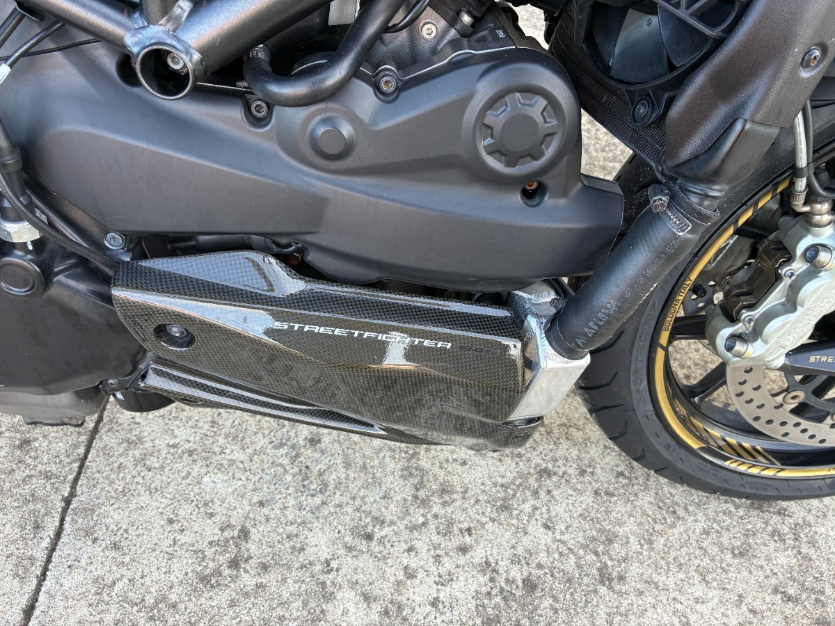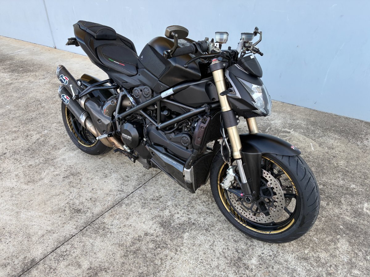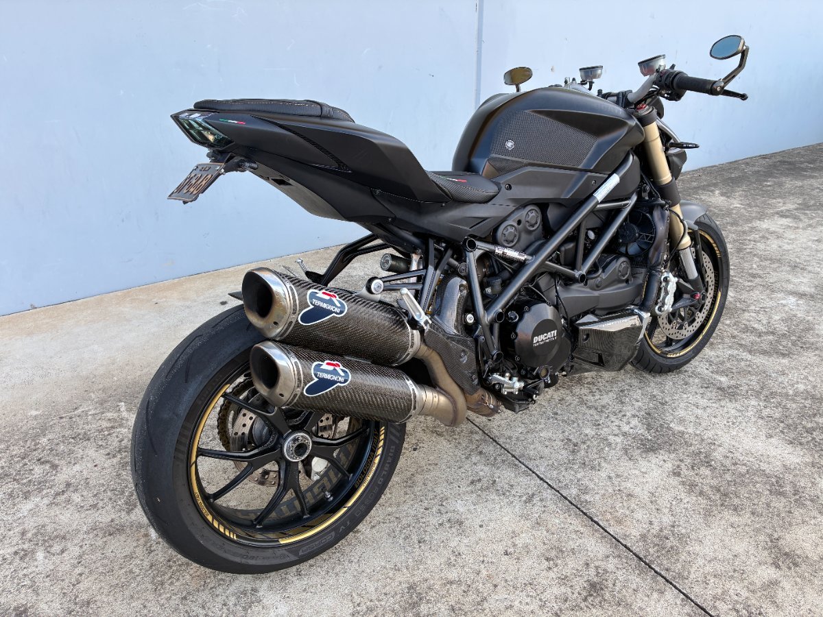 For sale is a 2012 Ducati Streetfighter 848, a raw and exhilarating Italian sports machine finished in sleek black and fitted with the unmistakable Termignoni exhaust system. This bike delivers that signature Ducati bark deep, aggressive, and absolutely addictive while sharpening the Streetfighter's already fierce personality.^^Powered by Ducati's 848 Testastretta engine, the Streetfighter offers explosive mid range torque, razor sharp throttle response, and the kind of handling that makes every corner feel like a playground. Its lightweight trellis frame, sport tuned suspension, and Brembo braking system give it the precision and confidence of a true performance thoroughbred. The ergonomics strike a perfect balance between street comfort and track ready aggression, making it a bike that feels alive under you without ever feeling unruly.^^This model is known for its thrilling power delivery, agile chassis, and unmistakable Ducati character. The Termignoni pipes elevate the experience even further, adding both performance and presence. It's a bike built for riders who want something visceral, stylish, and unmistakably Italian.^^Finance options are available, and delivery can be arranged Australia wide, making it easy for the right rider to make this stunning Streetfighter their own.
